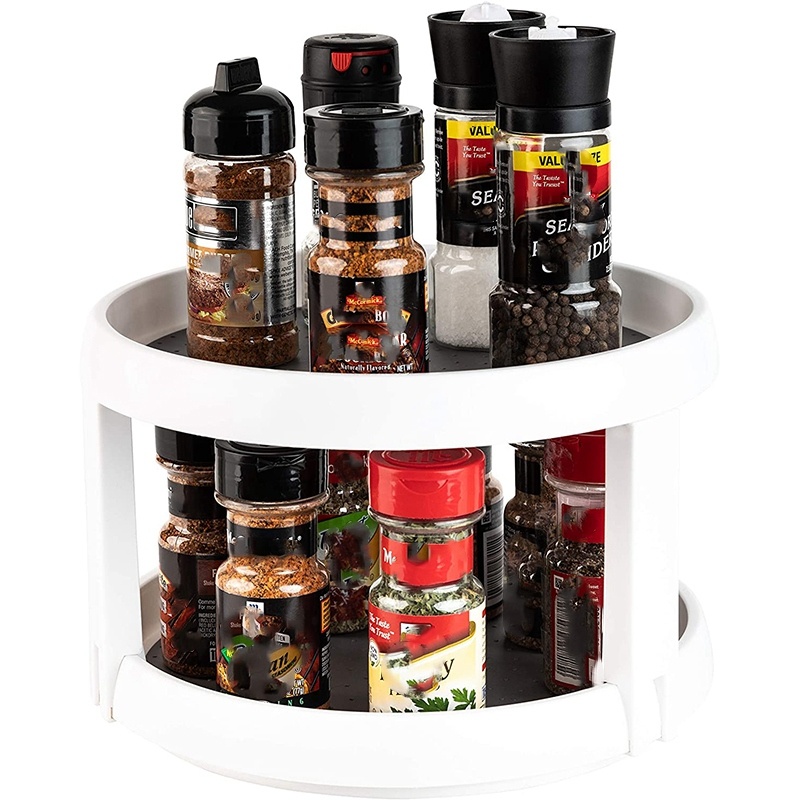 NON-SKID SURFACE- The two-tier Lazy Susan turntable has a non-skid surface to ensure that your items don’t fall off or slip. This non-skid surface is molded onto the platform for durability and is very easy to clean and maintain.